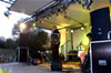 Bühne sardinenmäßig geschlichtet.